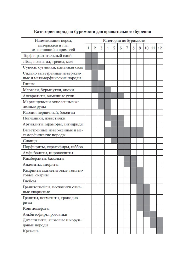 Категории пород по буримости для вращательного бурения