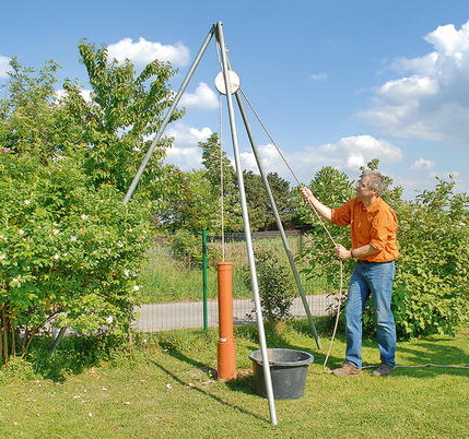 Ударно-канатное бурение. Для этого метода бурения используются желонки и забивные стаканы. Желонка – это снаряд, который кидается с высоты в скважину. При ударе о дно скважины в желонку входит грунт, который остается в ней за счет наличия клапана. Потом желонку вытаскивают на поверхность, вытряхивают из нее грунт, и снова кидают. Забивной стакан – по сути это тоже желонка, с той лишь разницей, что в стакане нет клапана, и грунт застревает в стакане за счет силы трения. С помощью желонки бурят, обводненные грунты, песчаные. С помощью забивного стакана бурят глинистые грунты, суглинистые, то есть достаточно вязкие, которые при отрыве стакана от грунта застревают в стакане. Ударно-канатное бурение – это довольно длительный и трудоемкий процесс.