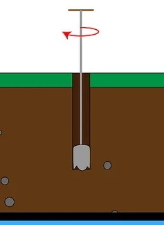 Шнековое бурение. Основным рабочим инструментом при шнековом бурении выступает классический Архимедовый винт (шнек). К буровой штанге приварены лопасти, которые вращательными движениями выносят породу на поверхность.